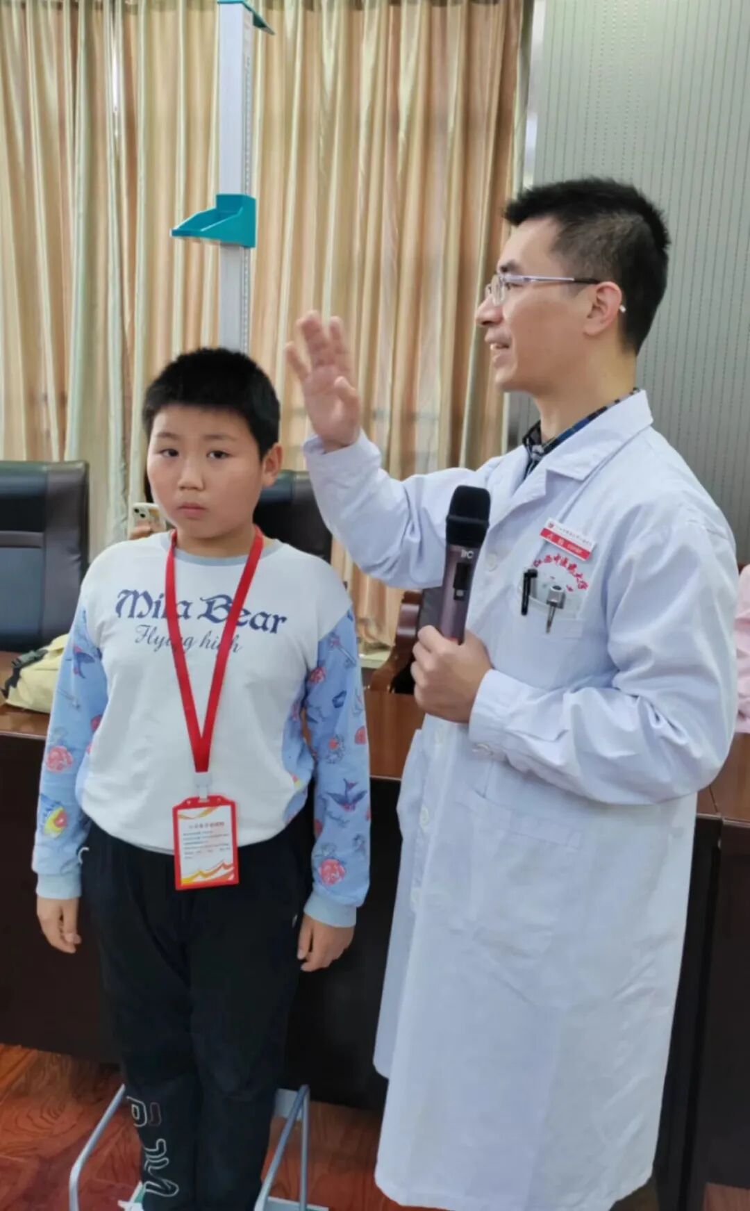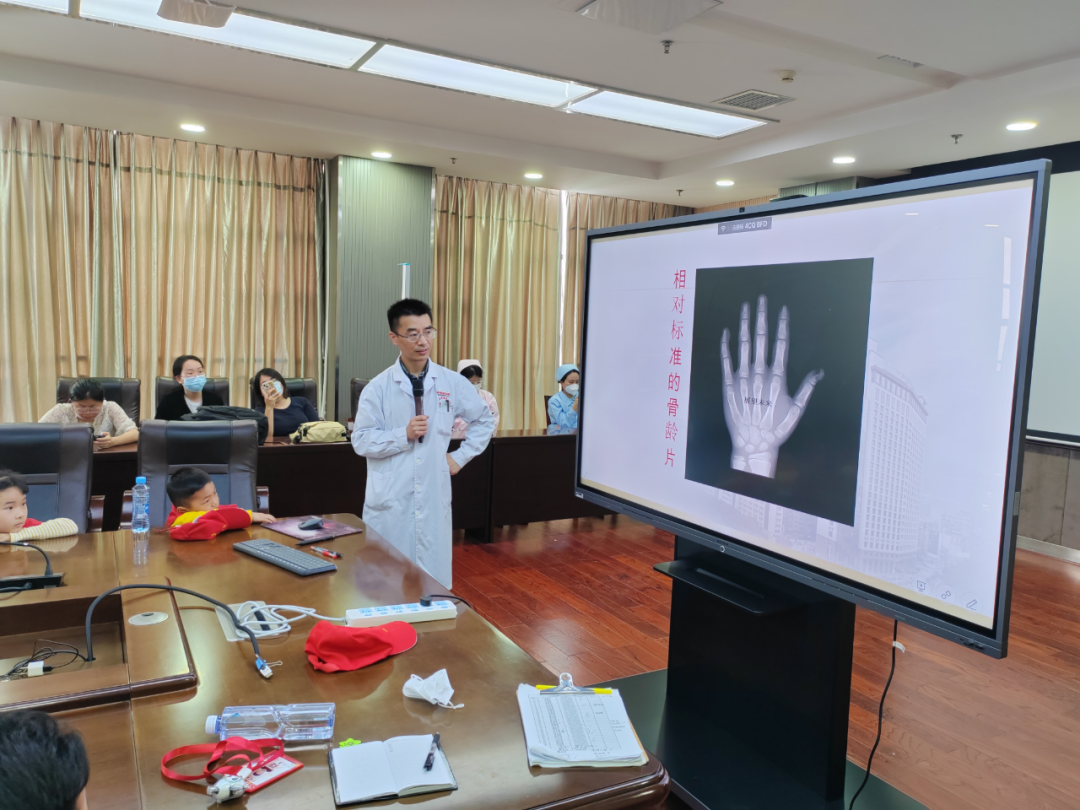 本次科普活动,由来自附属医院儿科的占科医师主讲,他为小记者们进行了生动的生长发育科普。活动中,小记者们学会了准确测量身高的方法,了解了测身高的“三同”原则(同一测量员,同一时间段,同一测量尺),并测量了自己的身高。小记者们还了解了测骨龄的意义,明白了身高和遗传、饮食、运动、睡眠等因素均密切相关。活动现场气氛热烈,小记者们纷纷表示,今后一定要好好吃饭,加强运动,早睡觉,以获得一个满意的身高。