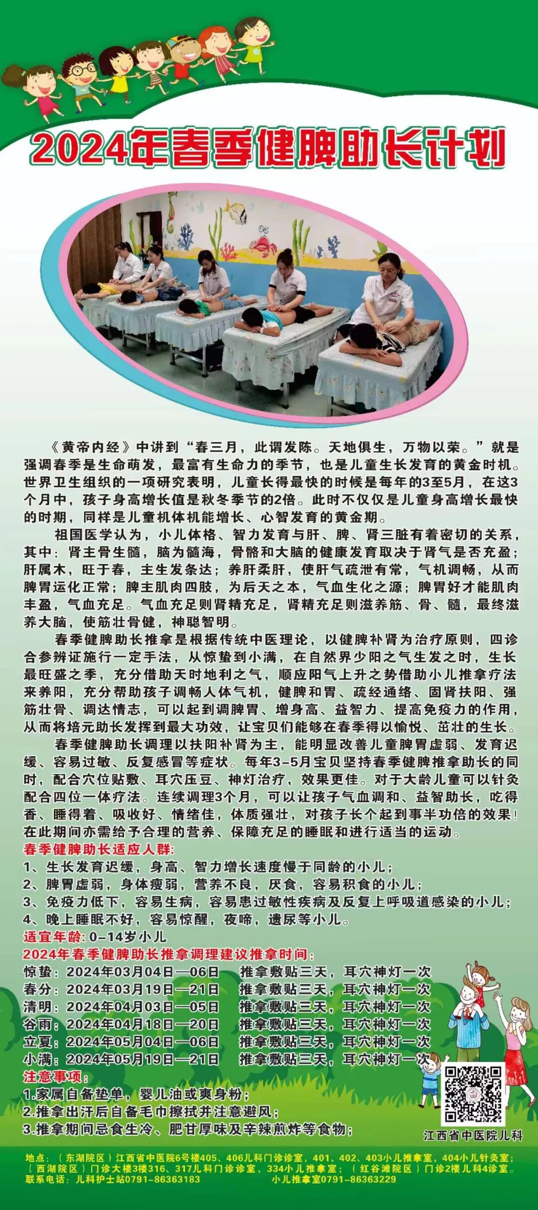 东湖院区:全年无休,上班时间:8:00-12:00,14:30-20:00;地址:6号楼4楼,小儿推拿室电话:0791-86363229。