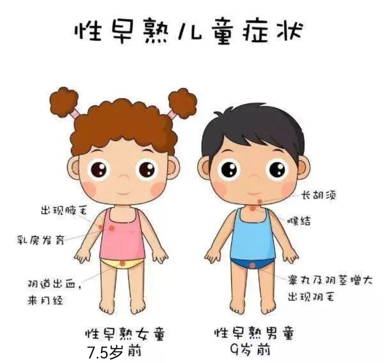 4. 女孩7.5岁前有乳房发育或10岁前出现月经初潮,男孩9岁前有睾丸增大等性早熟迹象的孩子。