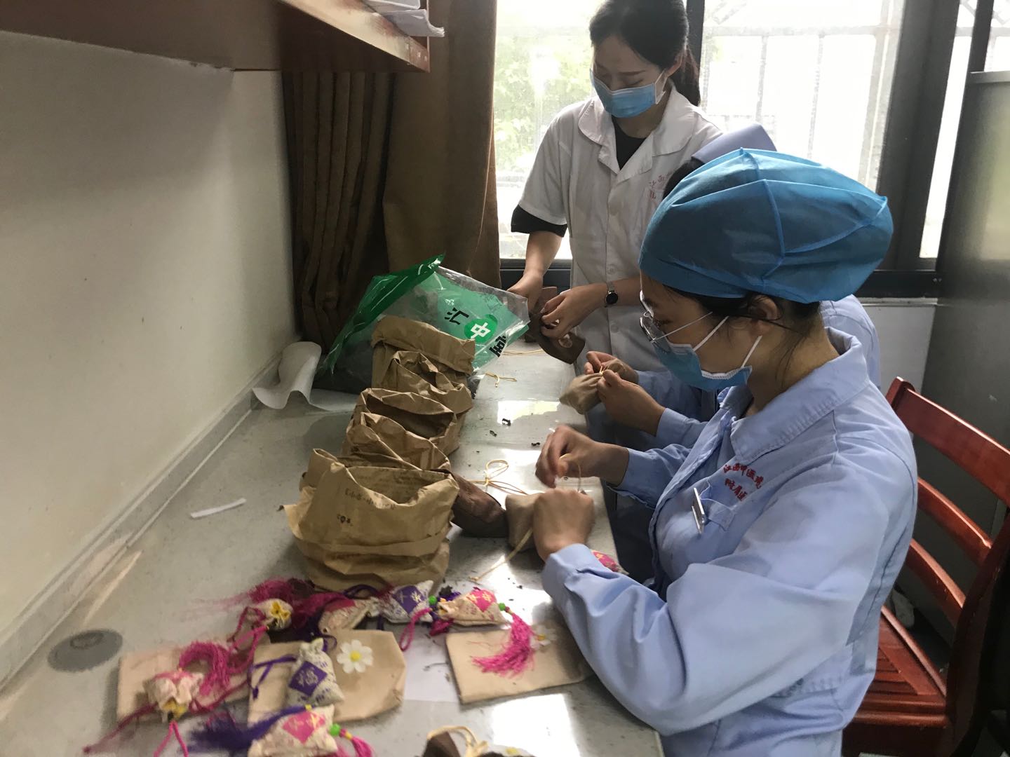 端午前夕,江西省中医院血液科的医护们就开始紧锣密鼓的筹备着,考虑到夏季炎热,蚊虫较多,血液科医护精心挑选了可以驱除蚊虫的中草药,从购买香囊,精选中草药配方,再到制作一个个充满药香味的驱蚊香包,细心的装进一个个小巧精致的香包中。