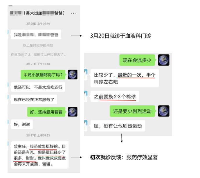 小儿五脏的生理病理特点早在《内经》中就有所论述,随着历代医家的不断阐述,逐步形成“三有余,四不足”的理论。曾英坚主任将小儿生理病理特点与脏腑虚实辩证相结合,加上鼻衄多因火热偏盛所致,考虑泽泽属于“阳常有余,阴常不足”,结合舌脉辨证鼻出血的病因病机为为肝火上扰,肺热炽盛。根据泽泽的病情特点开了相应的中药,方中选用藕节炭、白茅根等止血药治其标,缓解出血症状;加上夏枯草清泄肝火、桑白皮宣发肺热以治其本,从根本上解决引起出血的原因;泽泽鼻出血已经三个月,病程日久必然耗伤气血,加以清补良药太子参。