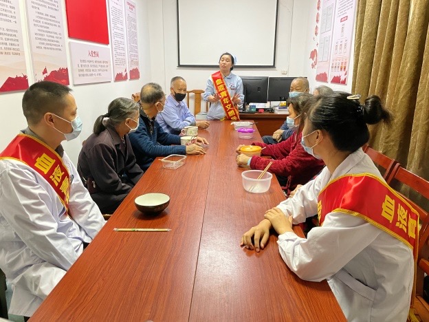 上午十点左右,血液科医护人员组织病房里60岁以上的老人们在血液科示教室集合,医护代表与老人们进行健康知识宣讲并亲切慰问与交谈,向老人们表达真诚关怀,同时也送上了节日的祝福与问候。为表达血液科全体成员对病友们的美好祝福,上午十一点半左右,血液科青年文明号集体也精心为病人煮好了长寿面,医护集体与病友们一起吃长寿面,希望病友们都能健康长寿,整个示教室洋溢着温馨、祥和的氛围。