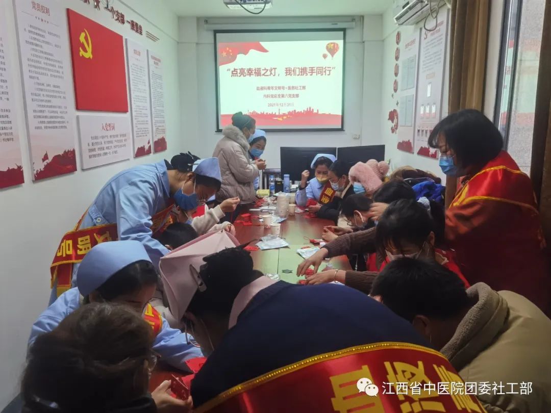 为弘扬传统文化,活跃病房氛围,增加医患之间的沟通与互动,缓解住院患者的烦闷情绪,在新年来临之际,我院血液科青年文明号集体携手医务社工部组成联合团队,共同开展了一场“点亮幸福之灯,我们携手同行”的灯笼手工制作活动,让血液科住院患者们在住院期间,感受到节日的喜庆与热闹的气氛。