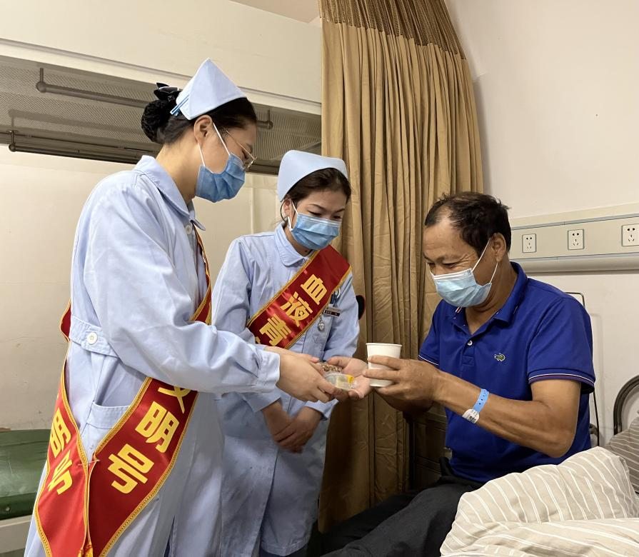 上午10点半,医护人员将提前准备好的重阳糕及菊花茶送至病房,向患者讲述了重阳节的来历并且送上祝福;邀请老人们一起尝重阳糕,品菊花茶,寓意病愈长寿,百事俱高;同时因时至白露,天气渐凉,叮嘱患者避风寒,慎起居,调饮食,告知秋冬养生小知识等。