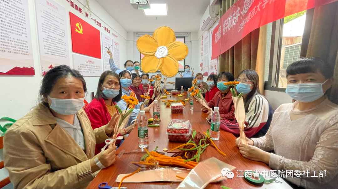 5月12日是第112个国际护士节,我院血液科青年文明号携手内科党总支第六党支部开展了"与花相伴、绽放芳华"主题活动,组织医护人员们和患者们共同参与了手工花艺制作的活动。
