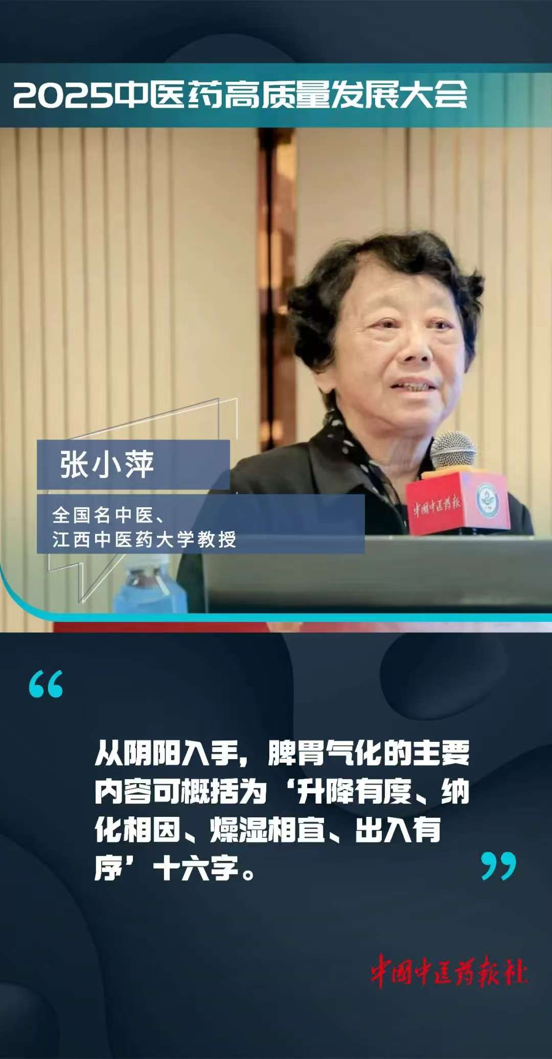 2025年12月6日,我院全国名中医张小萍教授在2025中医药高质量发展大会作主旨报告
