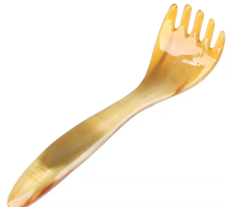 工具准备:牛角刮痧板/玉石板(或圆润梳子背),搭配少量精油或润肤油。