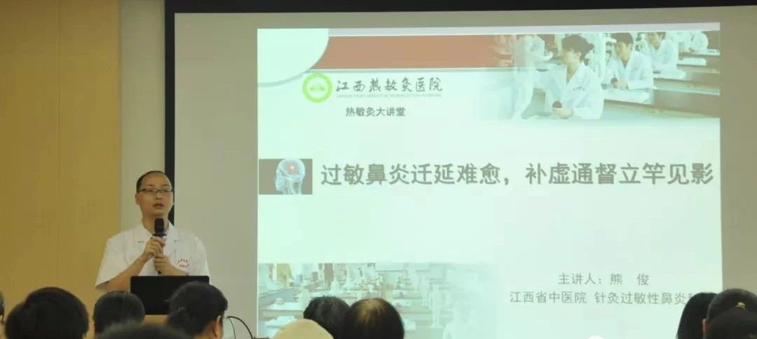 今天,江西中医药大学附属医院针灸过敏性鼻炎专科主任熊俊博士主讲的热敏灸大讲堂第二十六期,《过敏鼻炎迁延难愈,补虚通督立竿见影》在江西中医药大学附属医院(抚生分院)综合楼六楼培训室顺利开课。