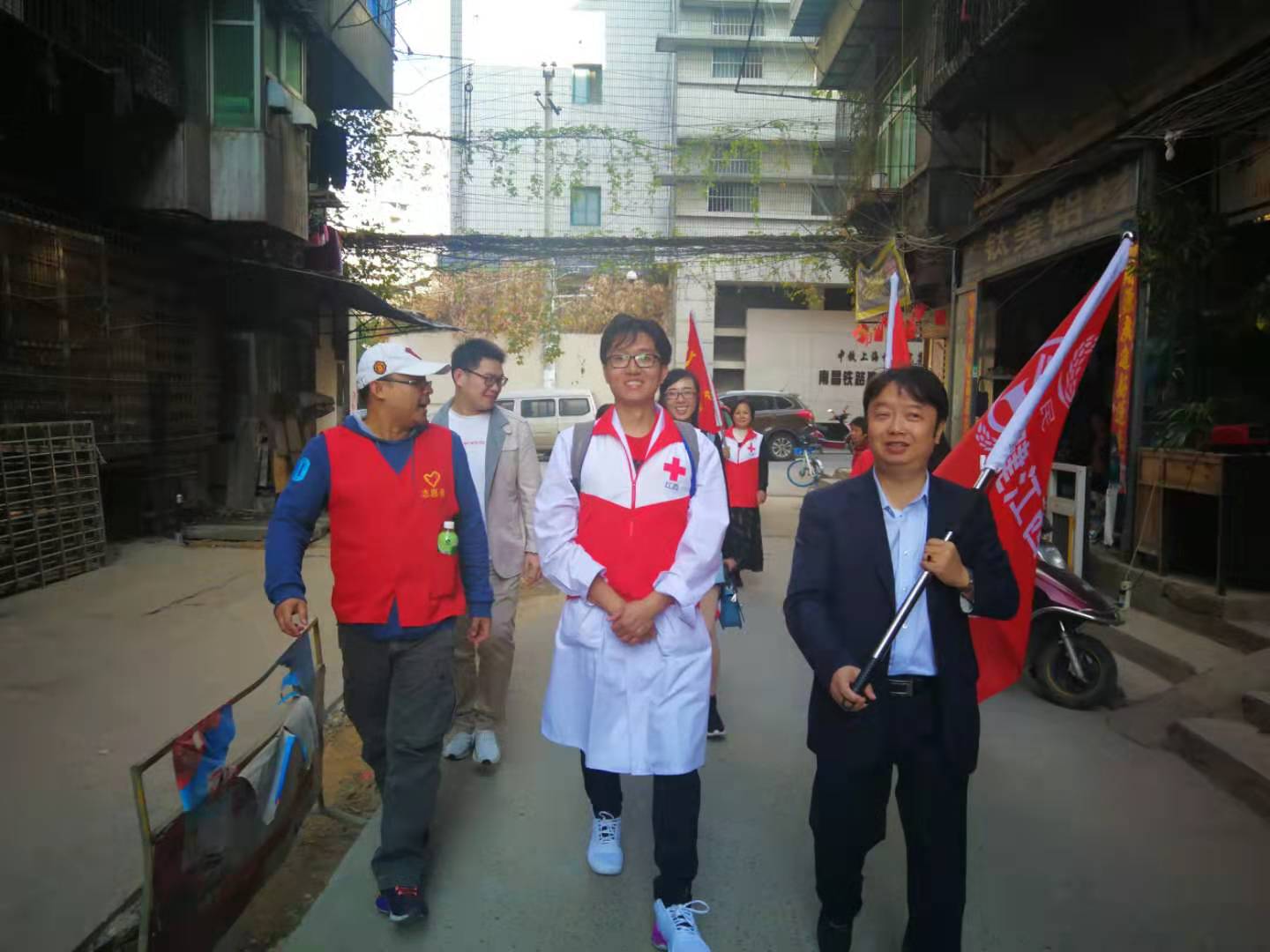 为深入贯彻领会“不忘初心,牢记使命”的主题教育精神,秉承着为人民做好事,办实事,谋幸福的宗旨,11月5号下午江西中医药大学附属医院灸疗党总支联合民建交通总支、江西省红十字会及铁五社区开展关爱老人的养老“五送”志愿活动,即送文化,送政策,送医送药,送法律,送温暖。